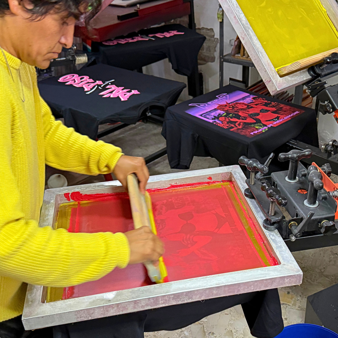 Serigrafía textil profesional para marcas y proyectos que buscan colores sólidos, alta durabilidad y acabado premium. Ideal para producciones medianas y grandes, con resultados que se ven y se sienten de calidad. Imprime tu marca como se debe.